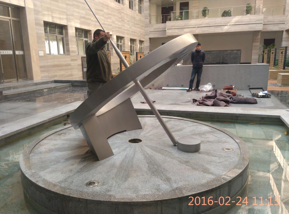 不銹鋼雕塑——“日晷”完工,于2016年2月安裝于山東省東營市電業(yè)總公司。