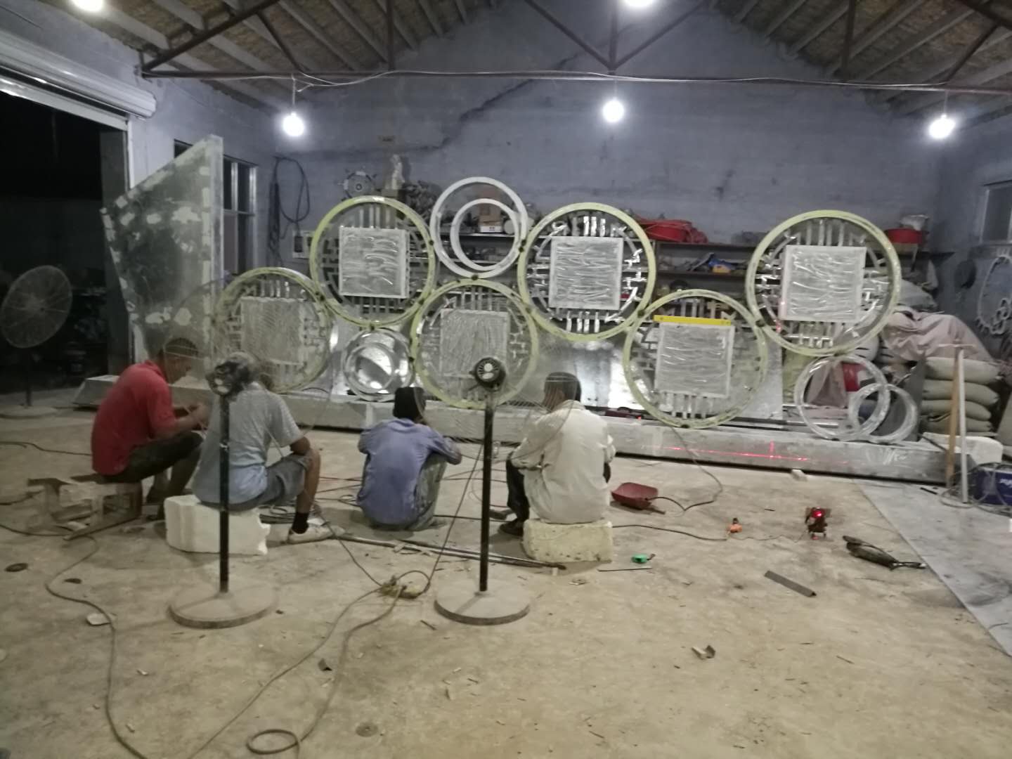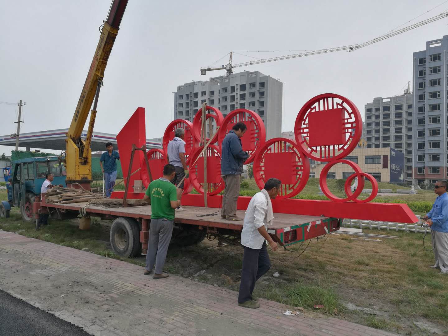 2、工藝:激光切割下料,手工焊接成型。鏤空花格前后雙面并封側(cè)板。本雕塑由濱州市東辦事處、濱州惠眾財(cái)金集團(tuán)交付我公司施工。