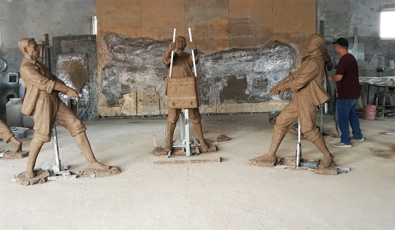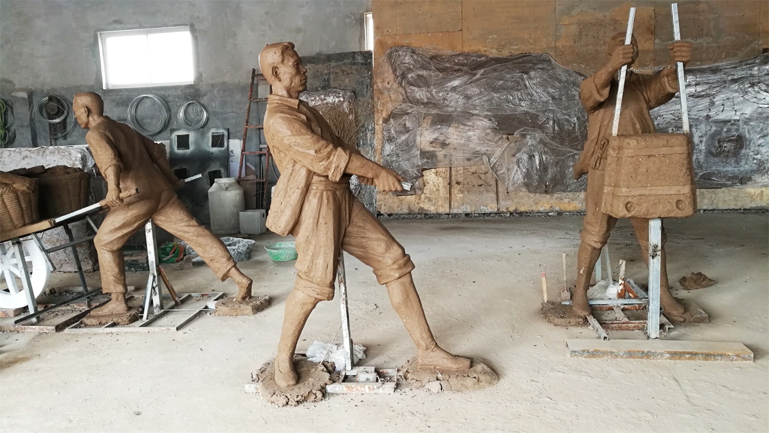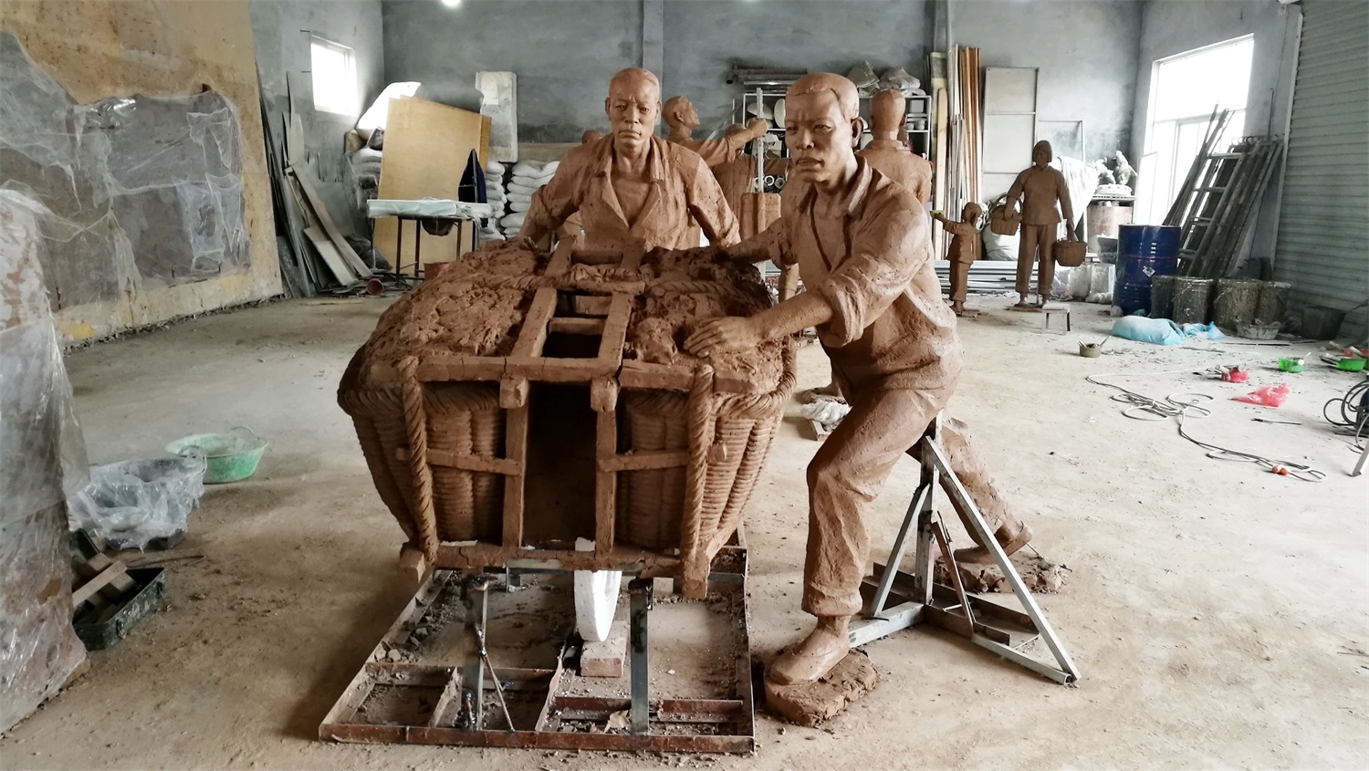 簡介:選取修建堤壩中人們熟悉的具有時代印記的幾個小場景,再現(xiàn)前輩治理黃河的場景,老輩人有共鳴感,對年輕人有實(shí)際的教育和激勵。展現(xiàn)黃河人奮斗歷史繼承黃河精神。泥塑于5月23日完成。