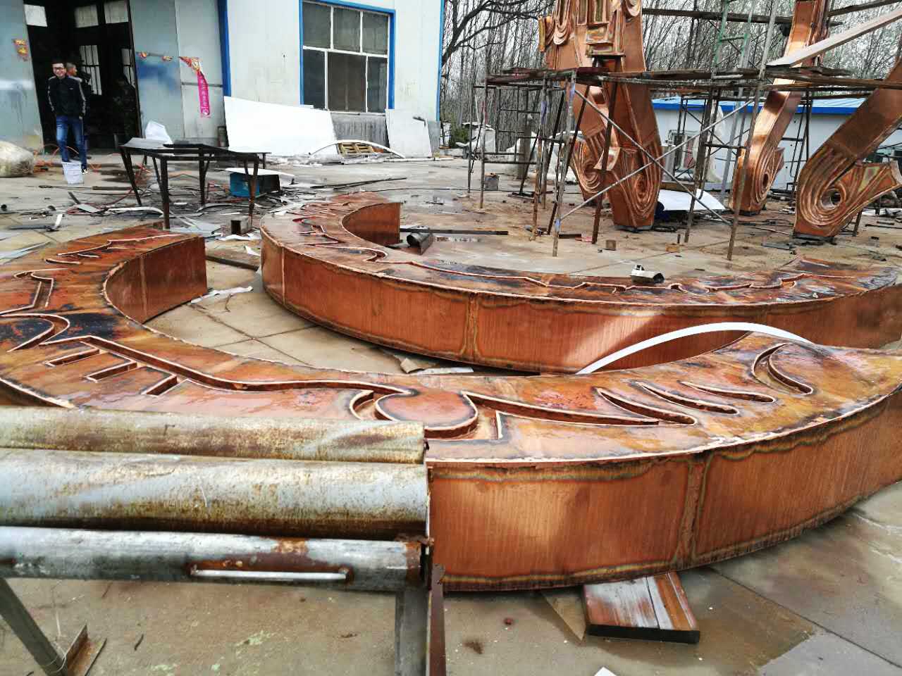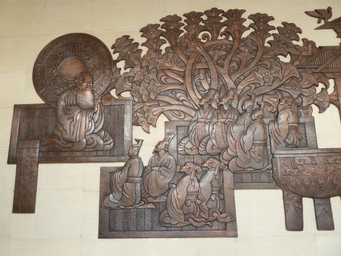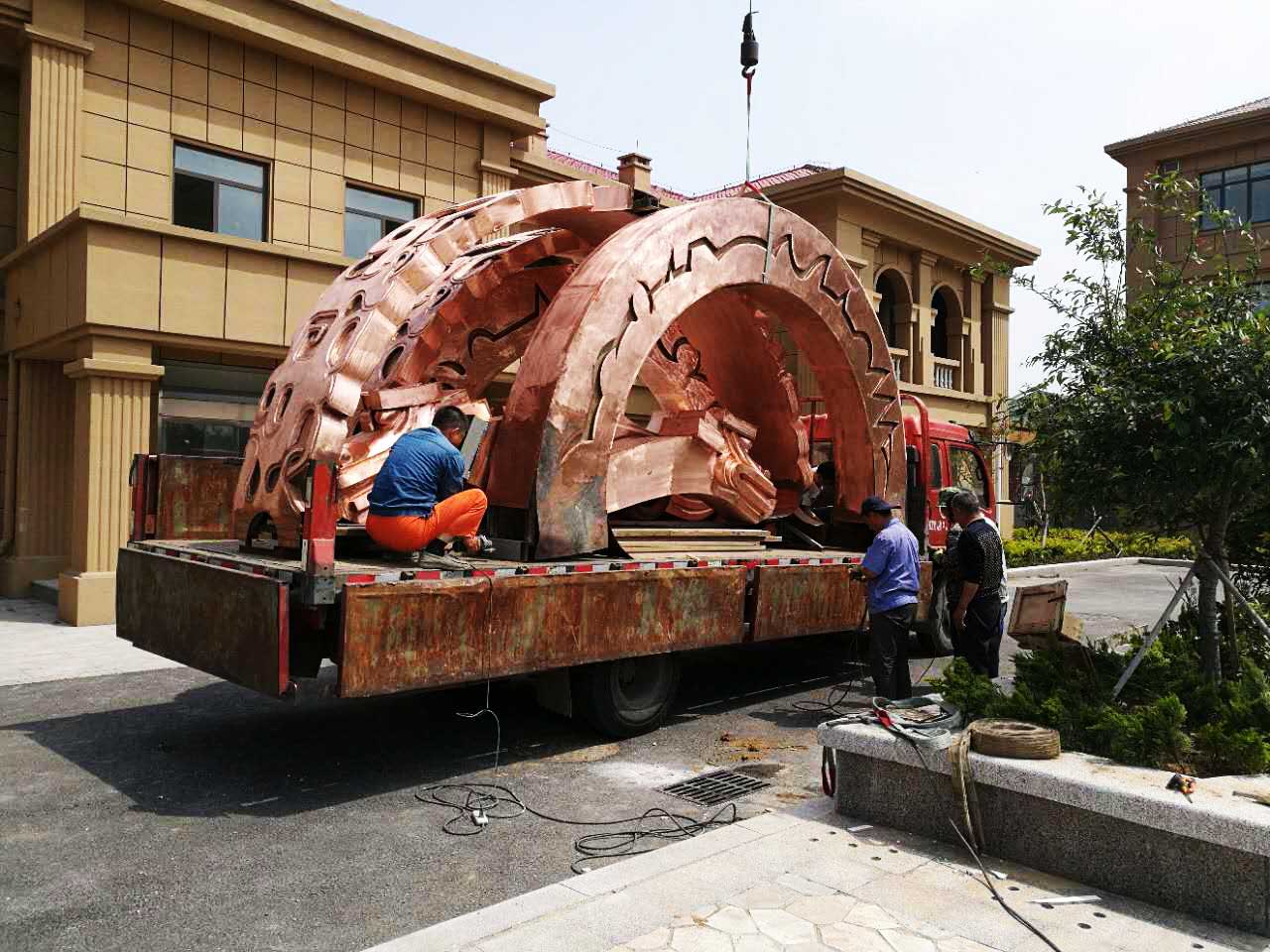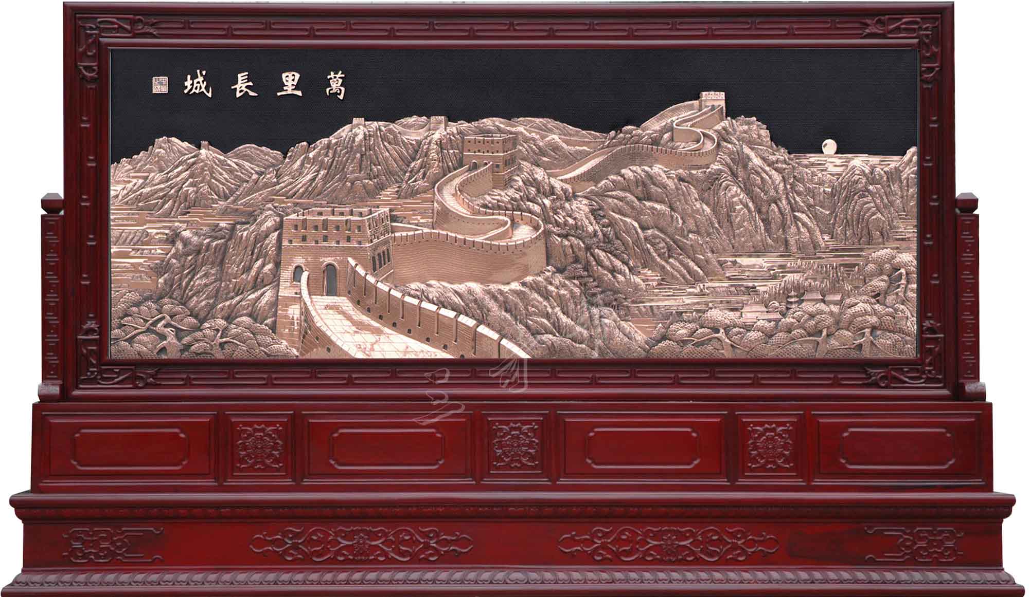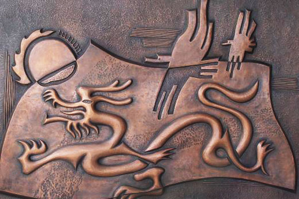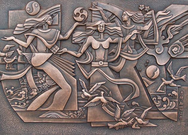 鍛銅雕塑,鍛銅浮雕展示。鍛銅浮雕(又叫鏨銅或敲銅),是利用銅材料的延展性興起來得鏨刻工藝,是我國傳統(tǒng)手工藝百花中的一枝奇葩。鍛銅雕塑的制作過程是先做出一個模子,然后用特制的膠粘在固定位置上,將銅板加熱后質(zhì)地變軟的銅板放在模子上用錘子進(jìn)行敲打,敲打后又恢復(fù)堅硬,這樣便可以成形,然后進(jìn)行著色處理,最終制作出藝術(shù)作品。