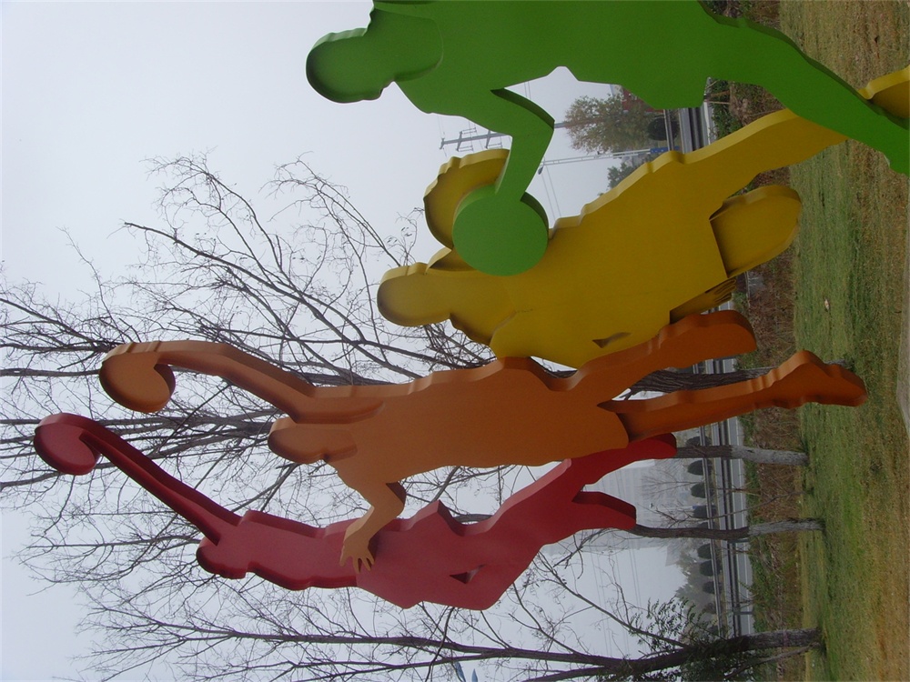 2012年7月,安裝于濱州市經(jīng)濟(jì)開發(fā)區(qū)黃河明珠文化廣場。雕塑材質(zhì)為不銹鋼,手工鍛造成型,表面氟碳漆著色。