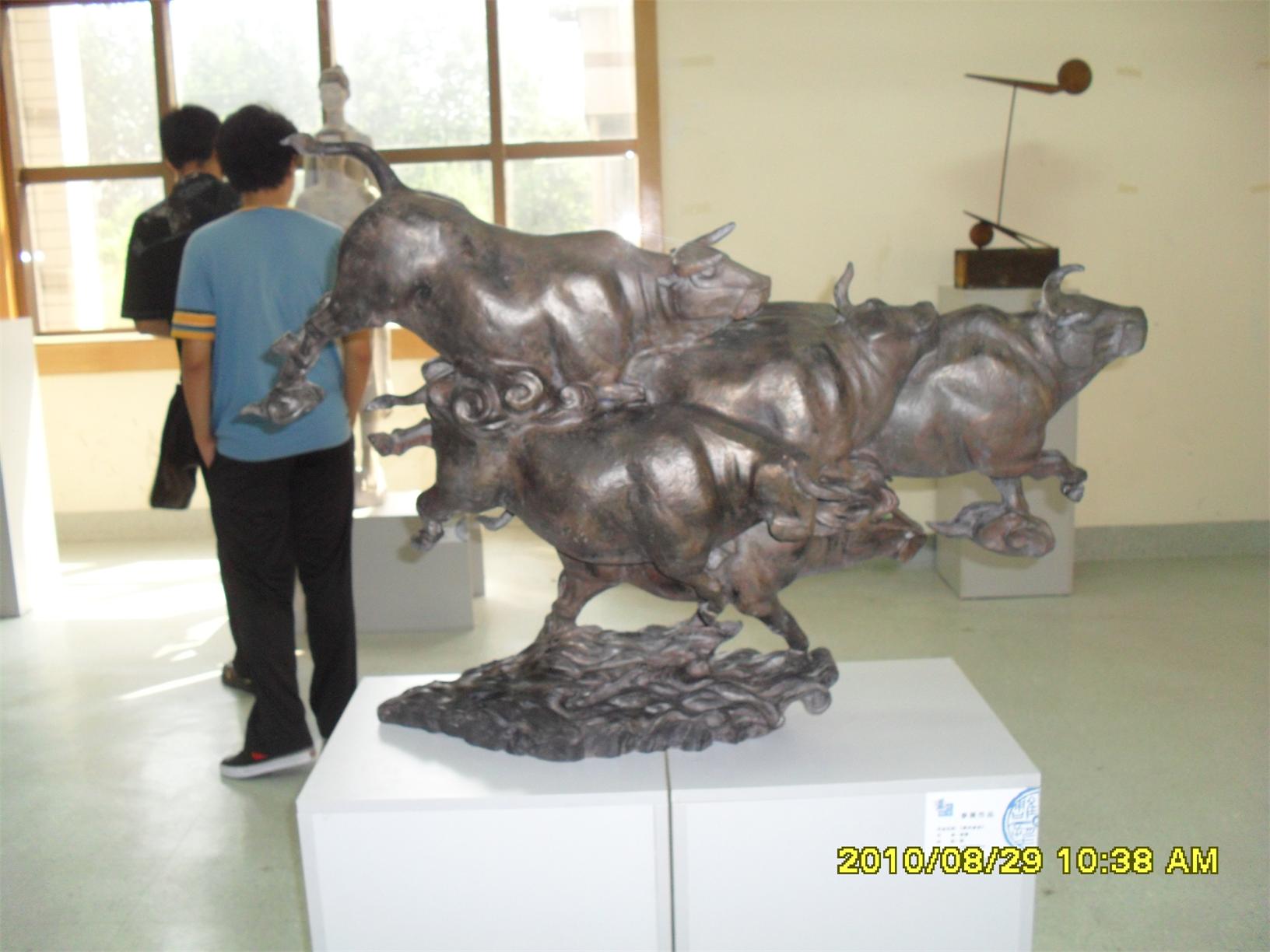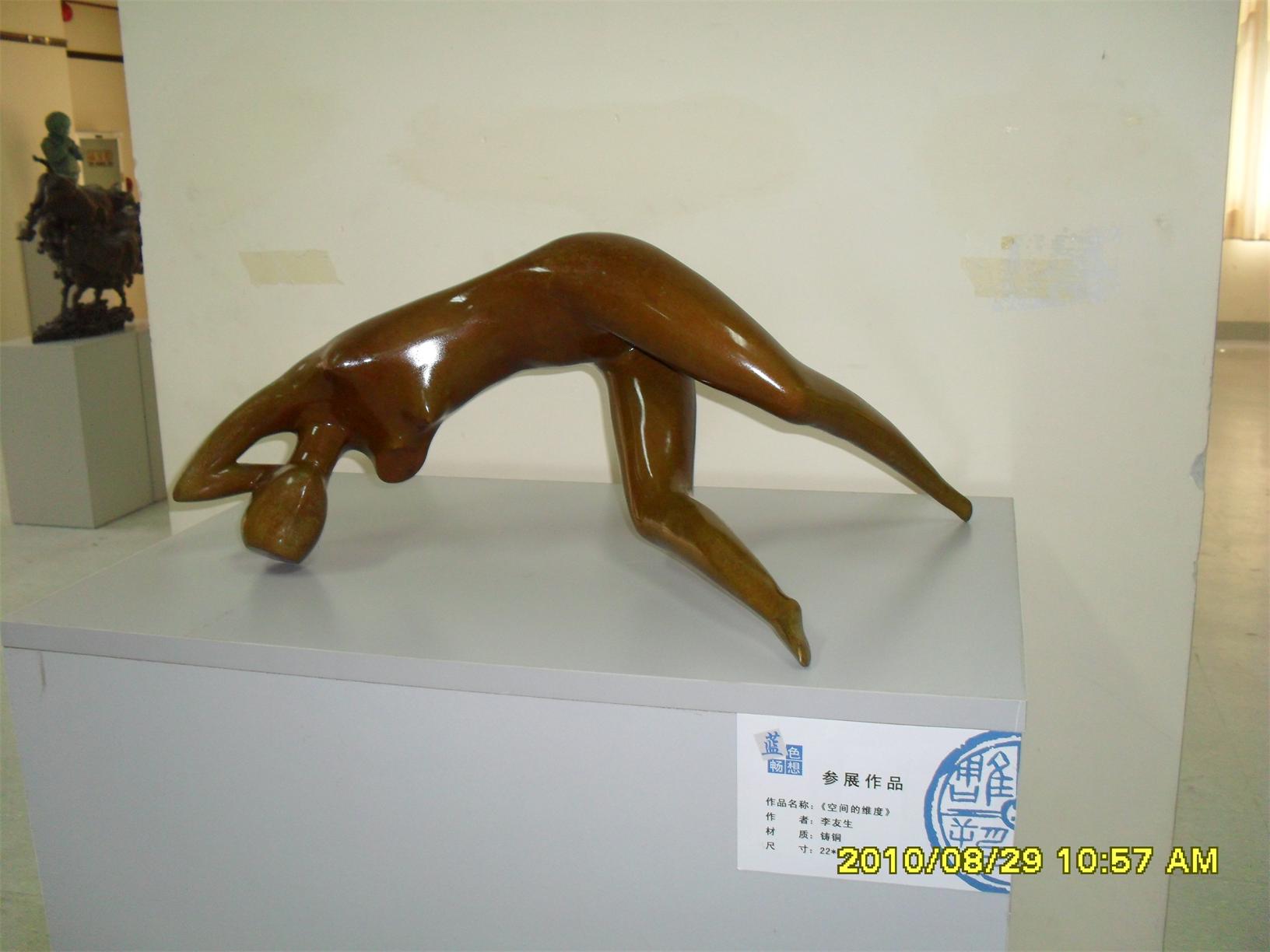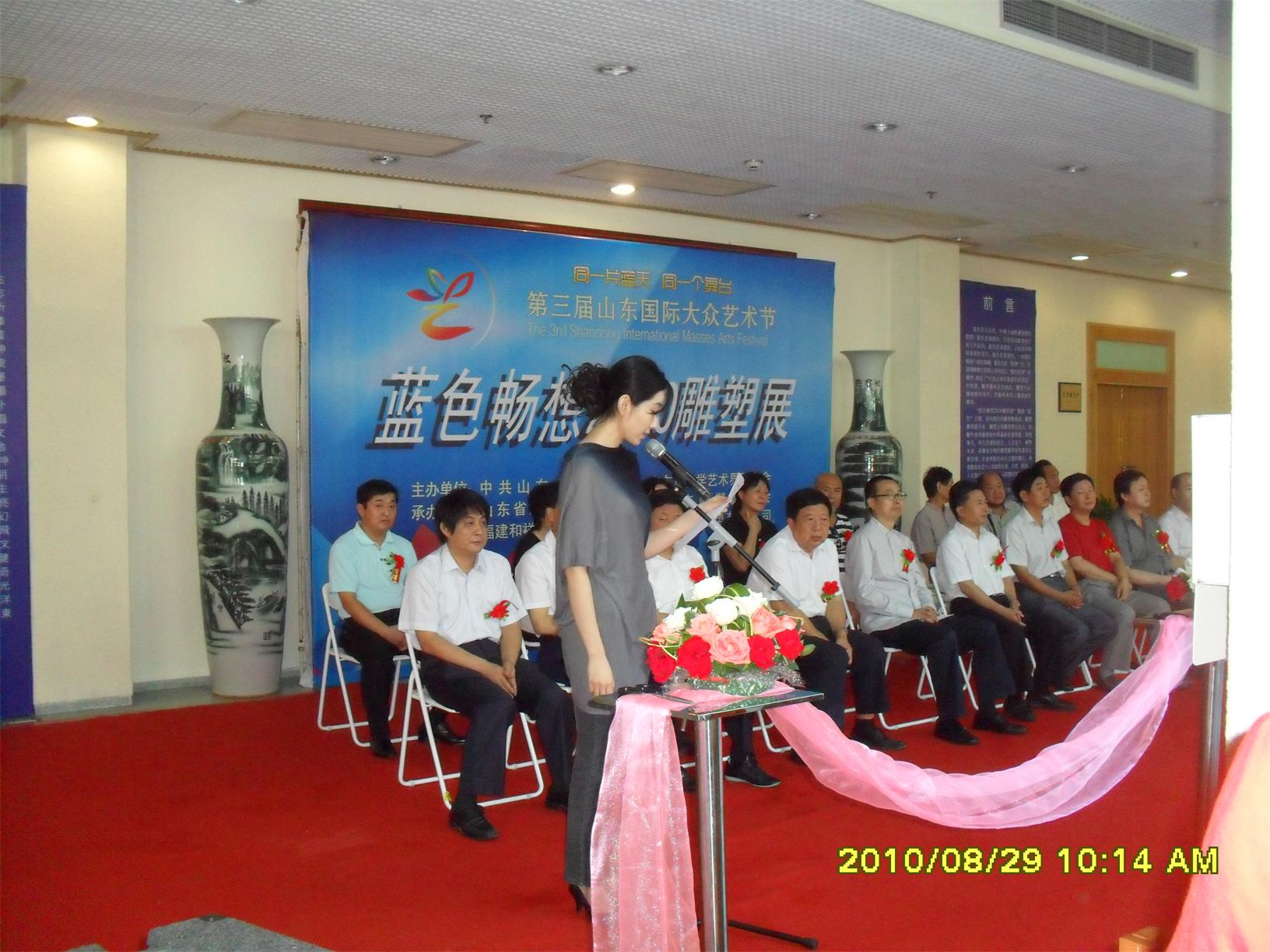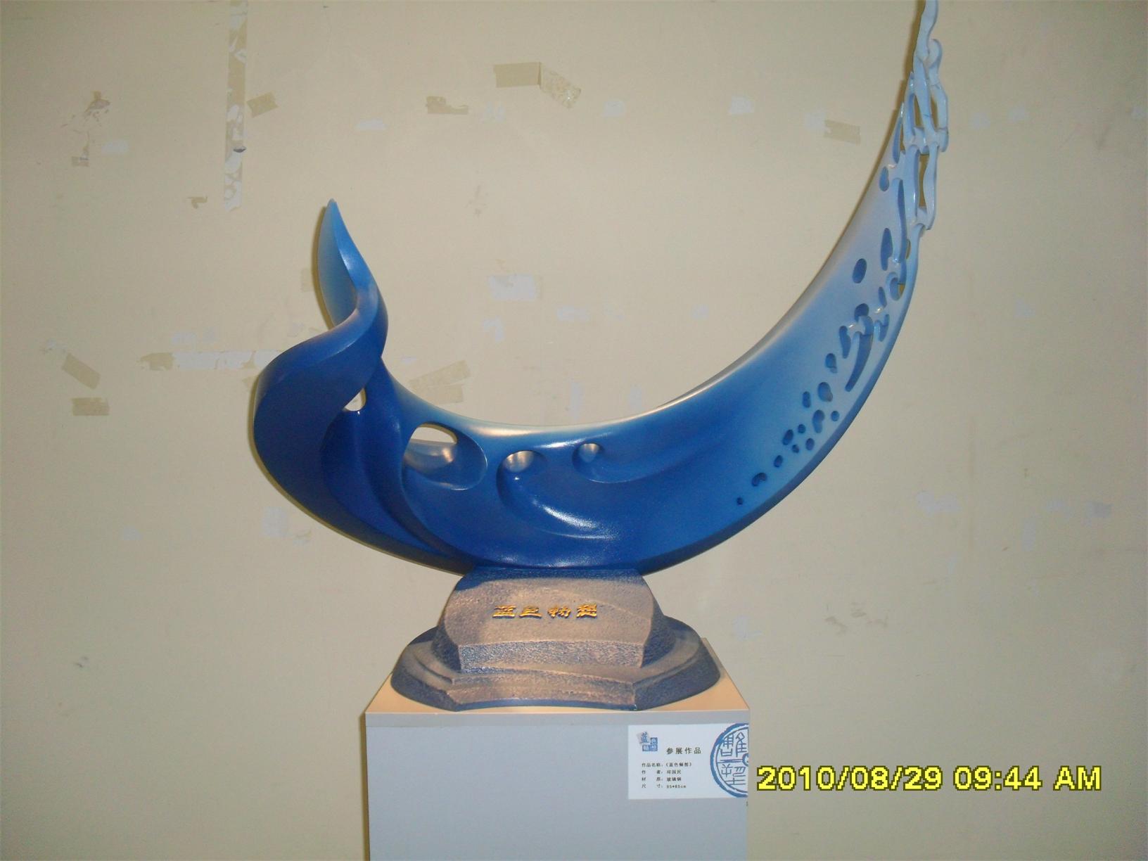 藍(lán)色暢想2010雕塑,2010年8月29日,由中共山東省委宣傳部、山東省文學(xué)藝術(shù)界聯(lián)合會(huì)主辦,山東省雕塑藝術(shù)家協(xié)會(huì)、青島雕塑家協(xié)會(huì)承辦的第三屆山東國(guó)際大眾藝術(shù)節(jié)--藍(lán)色暢想2010雕塑展在山東省圖書館隆重開幕。 "藍(lán)色暢想2010雕塑展"吸引了省內(nèi)外大批中青年雕塑家的參與,展覽共收到101位雕塑藝術(shù)家的126件入圍作品。其中省內(nèi)中青年雕塑藝術(shù)家占絕大多數(shù),圍繞"藍(lán)色"主題,堅(jiān)持創(chuàng)造、創(chuàng)新理念,創(chuàng)作了大批優(yōu)秀的雕塑藝術(shù)作品,語言生動(dòng),內(nèi)容多樣,借助不同材質(zhì)和多元化的藝術(shù)風(fēng)格,對(duì)藍(lán)色精神進(jìn)行了深入的闡釋。李友生的《海風(fēng)倩影》、王未的《藍(lán)色暢想》、譚信國(guó)的《蘋果系列》等作品,均對(duì)雕塑藝術(shù)內(nèi)涵進(jìn)行了深入的探索。